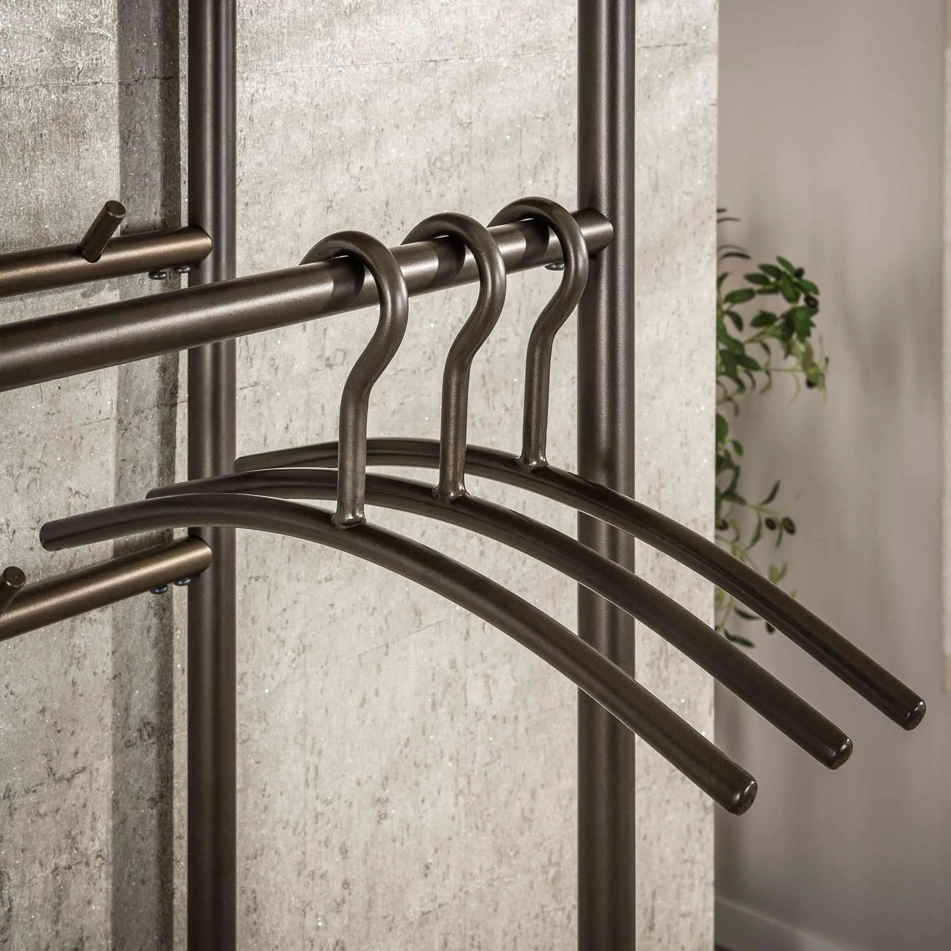 Ces cintres en métal à la finition bronze apportent instantanément une touche chic à votre espace de rangement. Leur teinte chaude et raffinée s’accorde parfaitement avec les portemanteaux et meubles d’entrée de la même collection, créant une belle harmonie visuelle dans votre intérieur. Chaque cintre est pensé pour accueillir aussi bien les vêtements légers que les vestes plus épaisses, sans déformer les tissus.