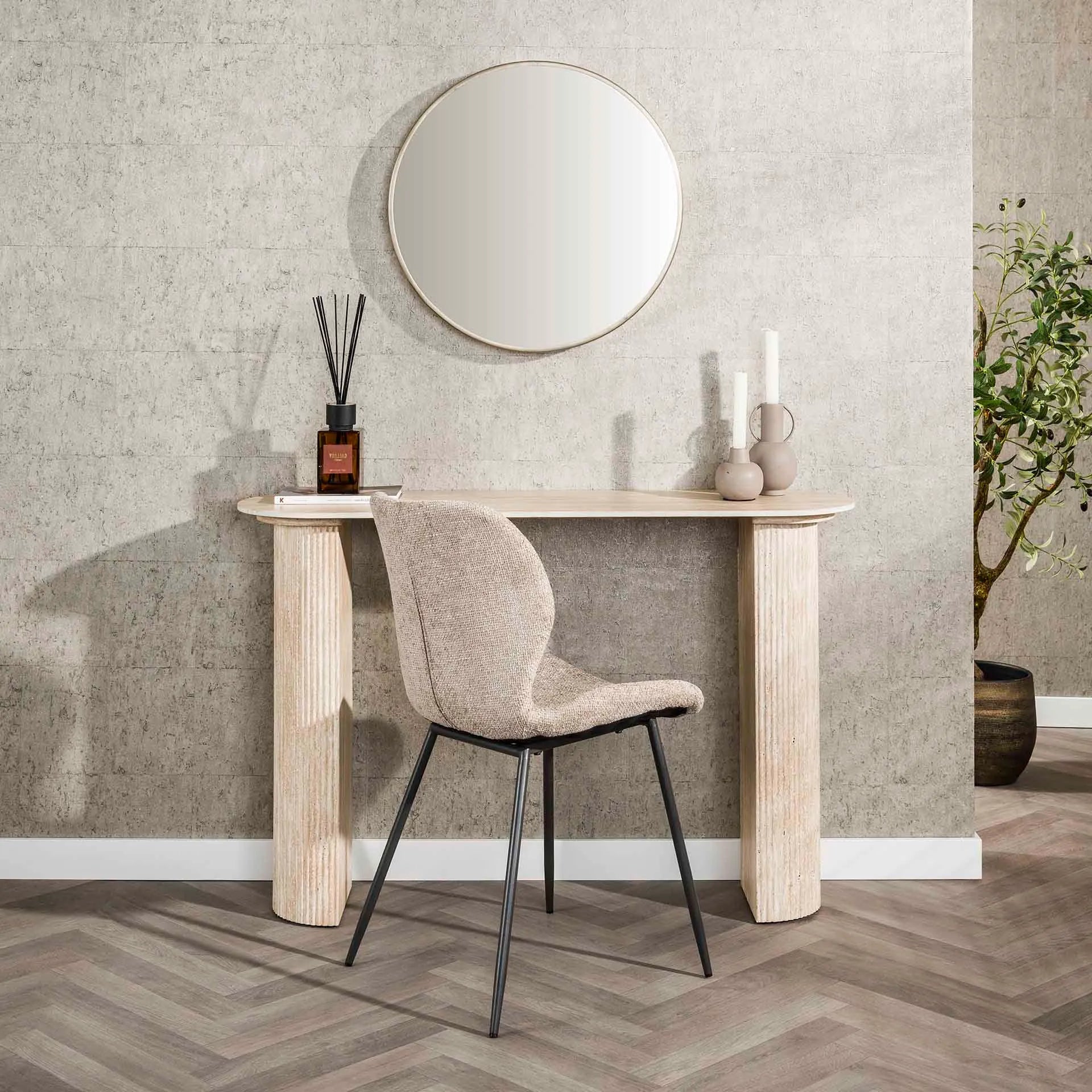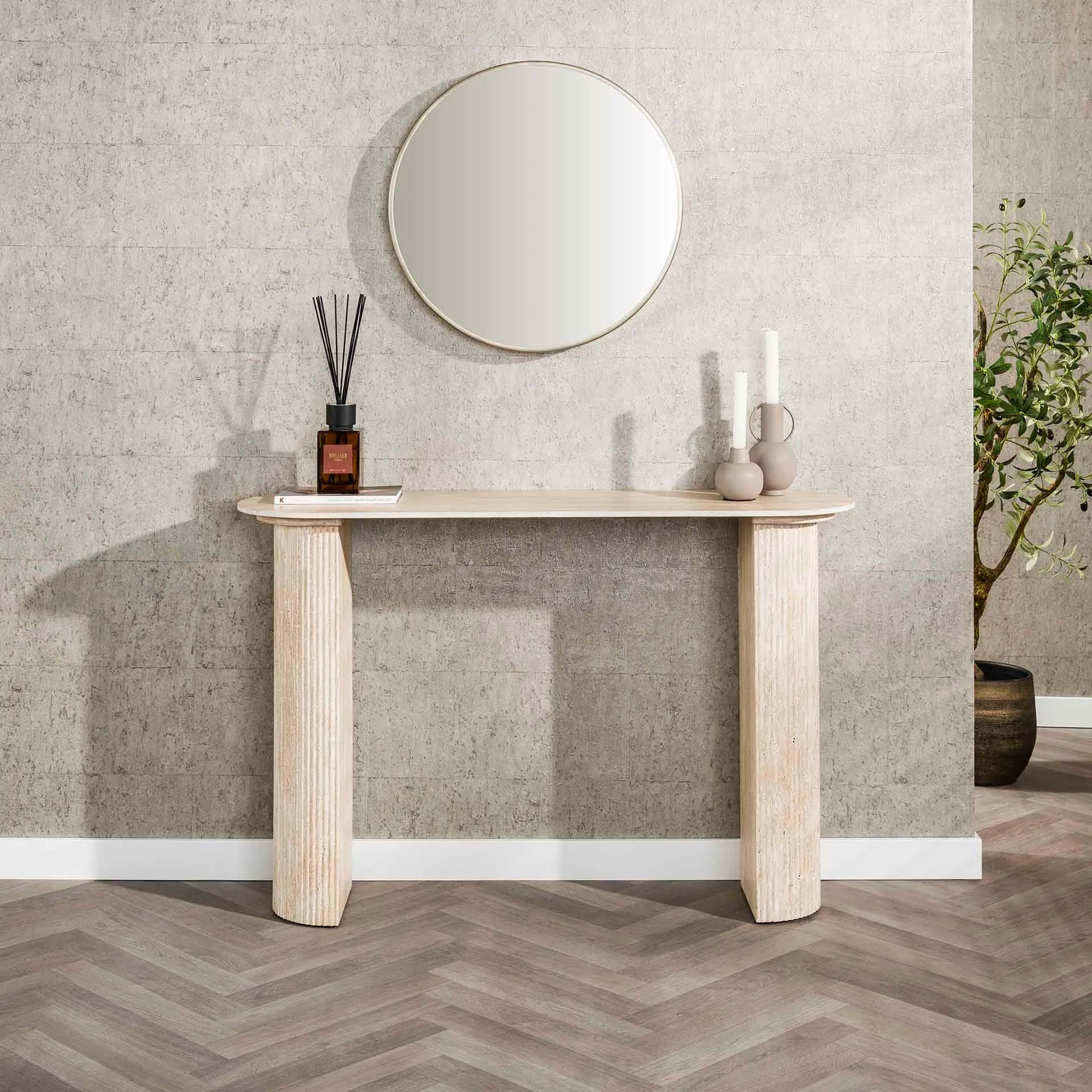Grâce à son format pratique et à son style intemporel, cette console peut aussi être utilisée comme table d’entrée ou coiffeuse, selon vos besoins et votre espace. Elle met parfaitement en valeur un miroir, une lampe ou un vide-poches, tout en assurant une surface résistante aux rayures, aux taches et à l’usure du temps.