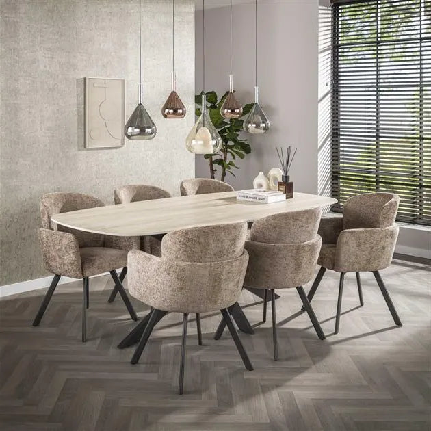 Le Fauteuil Pivotant Design séduit par son allure contemporaine et sa silhouette raffinée. Sa structure en acier thermolaqué lui confère une présence élégante et stable, tandis que son assise pivotante offre une grande liberté de mouvement. Revêtu d’un somptueux tissu chenille à tissage grossier, il apporte une texture chaleureuse et un style haut de gamme à n’importe quel espace. Vendu par lot de deux, il permet de créer un duo harmonieux et sophistiqué.