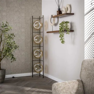 Le Lampadaire Verre 4 Lampes sublime l’espace avec ses quatre abat-jour ronds en verre ambré qui diffusent une lumière douce et enveloppante. Chaque point lumineux crée une ambiance chaleureuse, idéale pour transformer un salon, une chambre ou un coin lecture en véritable havre de confort. Son éclairage généreux met en valeur les volumes tout en apportant une atmosphère intime et accueillante.