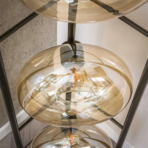 Le Lampadaire Verre 4 Lampes se distingue par son cadre métallique finition bronze, à la fois raffiné et robuste. Les abat-jour en verre ambré, parfaitement encastrés dans la structure, forment un ensemble harmonieux où la transparence chaude du verre rencontre la profondeur du métal. Ce contraste élégant en fait un objet décoratif fort, capable de rehausser instantanément le style d’un intérieur moderne ou classique.