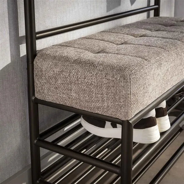 Le Porte-manteau Banc d’Entrée transforme l’entrée en un espace parfaitement organisé et accueillant. Sa structure en acier bronze thermolaqué apporte un style affirmé, à la fois moderne et chaleureux. Grâce à ses onze crochets, manteaux, sacs et accessoires trouvent immédiatement leur place, offrant un intérieur ordonné dès les premiers pas.