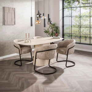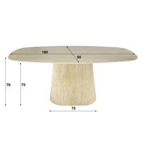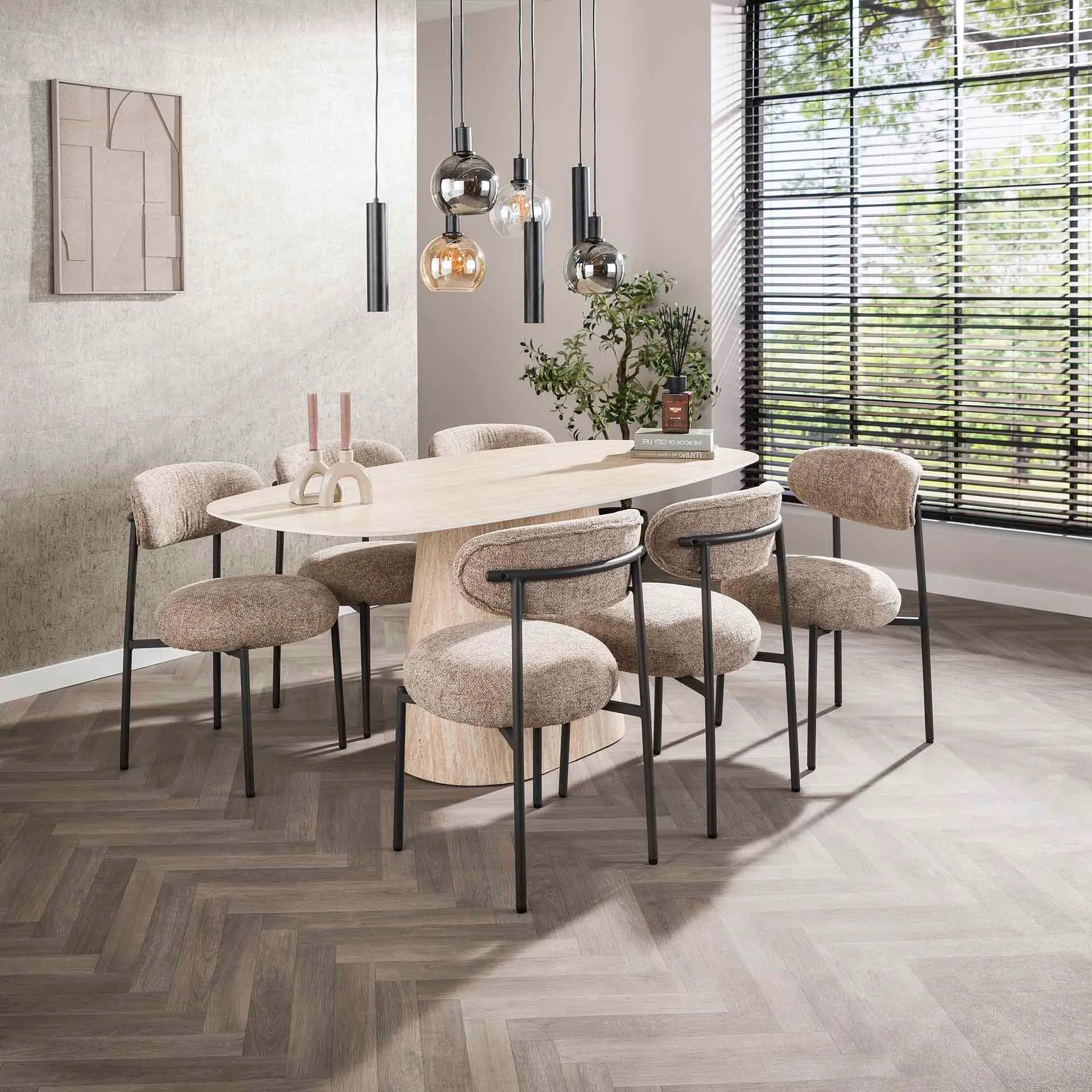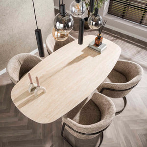 Cette table à manger en céramique séduit par son magnifique plateau ovale danois de 180 cm, une forme élégante qui apporte douceur et modernité à votre salle à manger. Sa finition imitation travertin offre un rendu naturel et luxueux, parfait pour créer une atmosphère conviviale et sophistiquée lors de chaque repas. Une pièce forte qui attire le regard dès l’entrée dans la pièce.