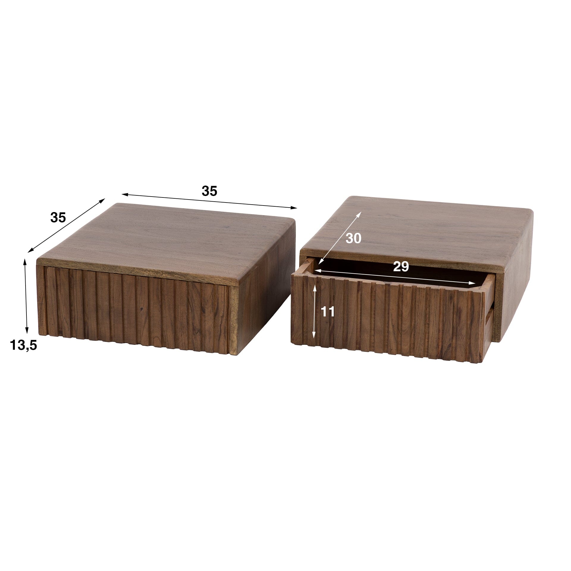 Apportez une touche de sophistication à votre chambre avec cette magnifique table de chevet acacia suspendu, conçue pour allier design moderne et charme naturel. Fabriquée en bois d’acacia massif, elle séduit par sa finition brun foncé aux reflets chaleureux, qui met en valeur les veinures uniques du bois. Grâce à son design flottant, cette table de chevet semble suspendue dans les airs, offrant un rendu visuel léger et aérien, parfait pour un intérieur contemporain et épuré.
