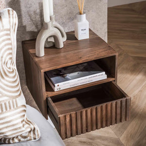Sublimez votre espace nuit avec cette table de chevet en acacia massif, une pièce où la beauté du bois naturel rencontre la modernité du design suspendu. Sa finition brun foncé met en valeur les nuances chaudes et les veinures uniques du bois d’acacia, créant une atmosphère apaisante et raffinée. Avec sa structure flottante et son format compact, cette table de chevet apporte une touche de légèreté tout en optimisant l’espace de votre chambre.